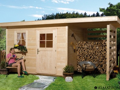 Idéals pour vos zones fumeurs, entrées, parking pour cycles ou arrêts de bus. L’ abri Lamia avec appenti est le modèle XXL de nos abris avec pergola. Il conviendra à toute la famille avec son bois en pin nordique solide et chaleureux : vous pourrez profiter de votre jardin tranquillement dans la pergola, peindre ou refaire le monde avec votre plume dans la partie atelier, et ranger tout ce dont vous n’avez plus besoin mais que vous souhaitez quand même garder. Abri de jardin avec appenti - Sapin FSC Surface intérieure : Abri : m² env.